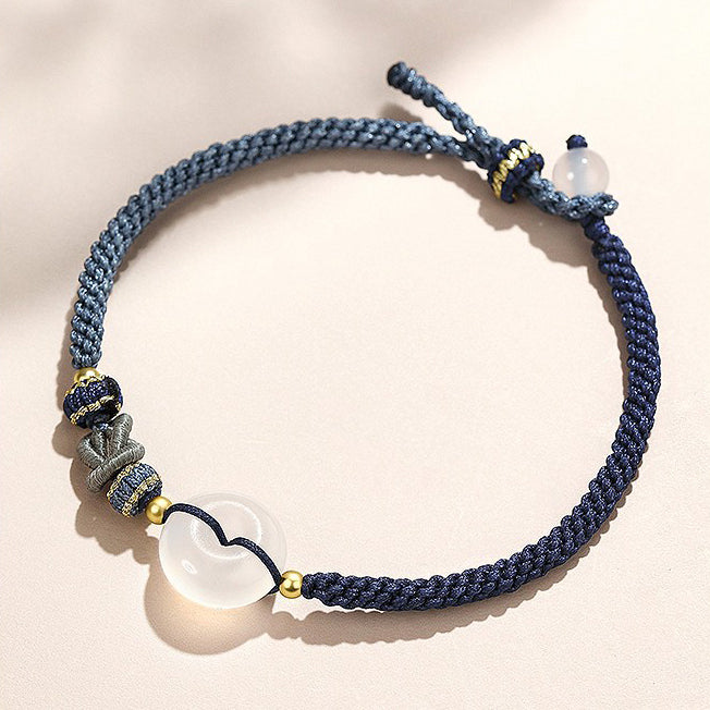 At its center is a white agate peace buckle, known for promoting calm, clarity, and emotional harmony. Choose between white or blue string to match your shared energy: white for purity, blue for trust and peace.